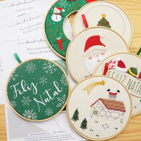 Todos os 5 riscos para bordar da coleção de Natal + risco extra gratuito.